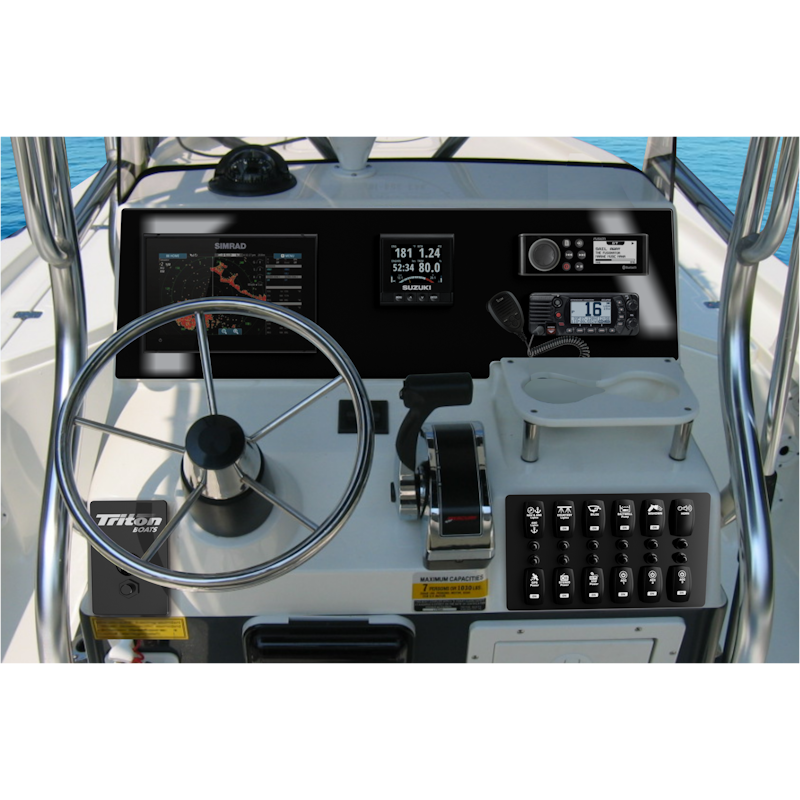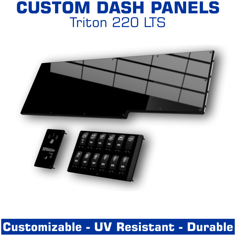 The Triton 220 LTS console consists of a 3-part dash & switch panel setup.  There is a dash panel, switch panel and a key / kill switch panel.  This listing is for a blank dash panel, a blank switch panel and a blank key / kill switch panel, or a pre-designed switch panel and a pre-designed key / kill switch panel.  You can purchase the blank or pre-designed panels independently or you can purchase the entire 3-part dash setup.