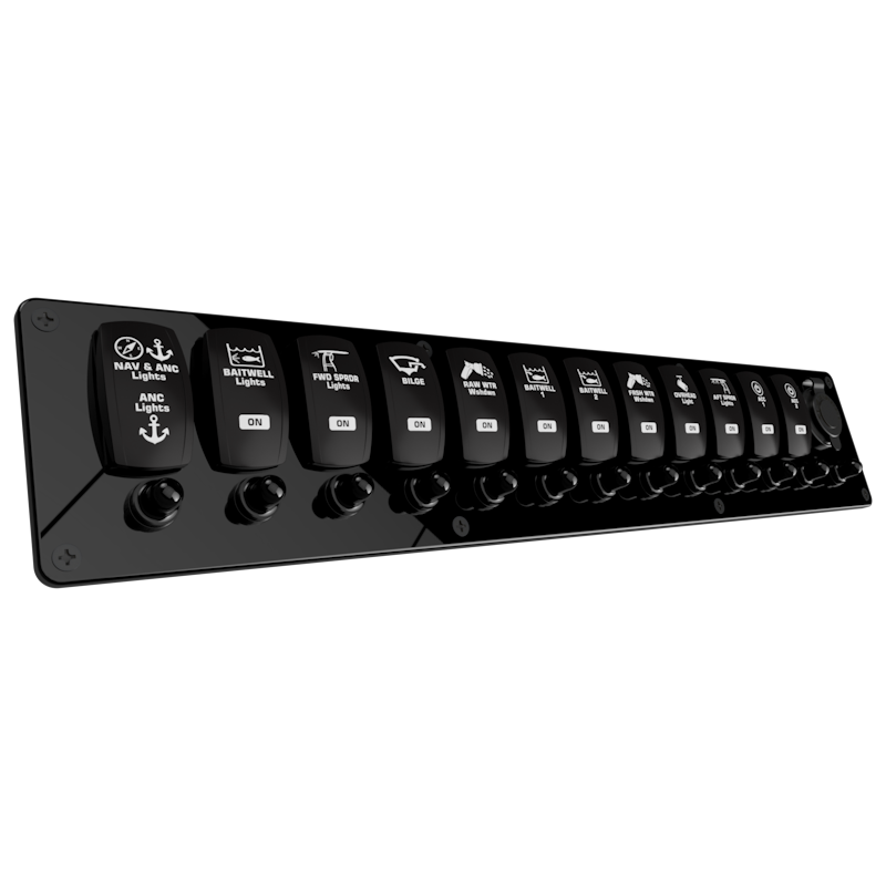 SWITCH PANEL + SWITCHES, 12V SOCKET & BREAKERS