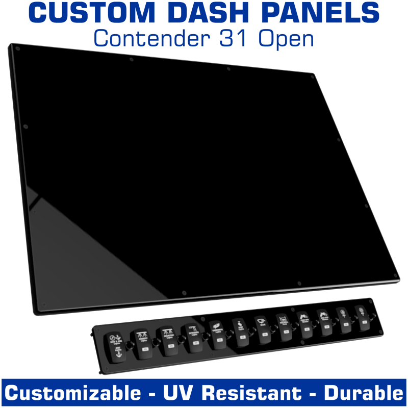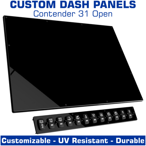 The Contender 31 Open console consists of a 2-part panel setup. There is a dash panel, and a switch panel. This listing is for a blank dash panel, and a blank switch panel or a pre-designed switch panel.