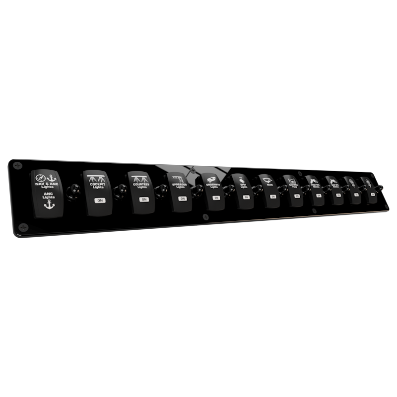 - (12) Blue LED rocker switches w/ push to reset breakers (NO WIRING)