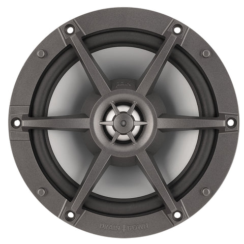 The UMS108 is made to kick out deep bass under challenging conditions. Its mica-reinforced polypropylene cone handles up to 350 watts RMS, and the stiffness of the cast aluminum basket gives you the clean, hard-hitting performance you expect from Polk. This sub's air-suspension design makes it suitable for installation in any panel of your boat without the need for an enclosure.