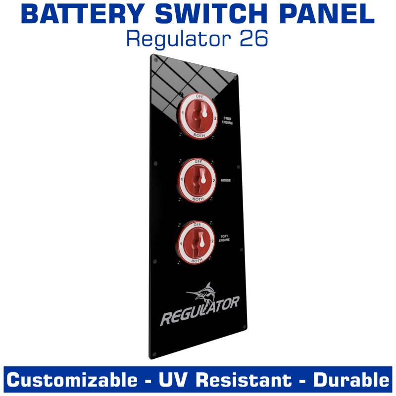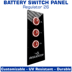 This listing is for a blank battery switch panel or a pre-designed battery switch panel. Upgrade options are listed below and can be added during the next step; the design!