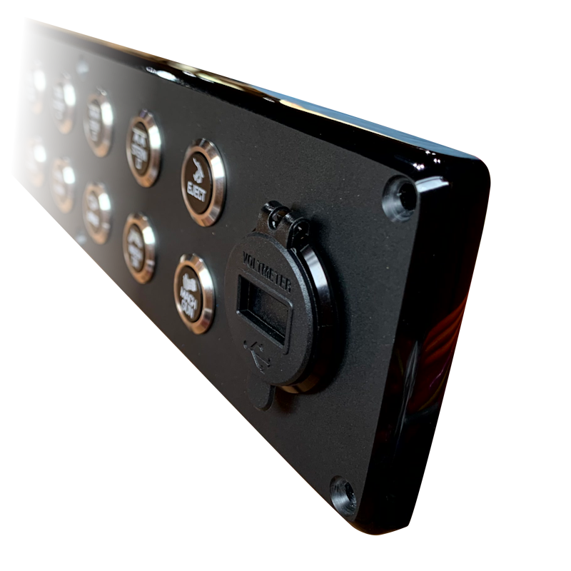 - Customization: We can customize your new switch panel however you want us to. Switches, circuit protection, wiring, logos, text etching, backlighting, phone chargers, gauges, etc.