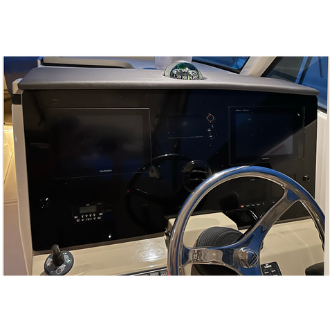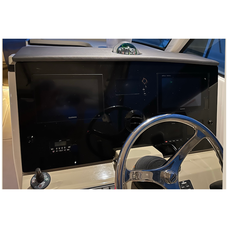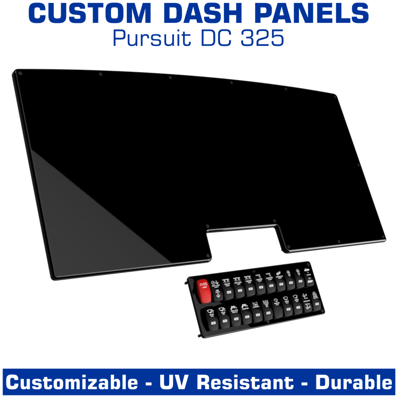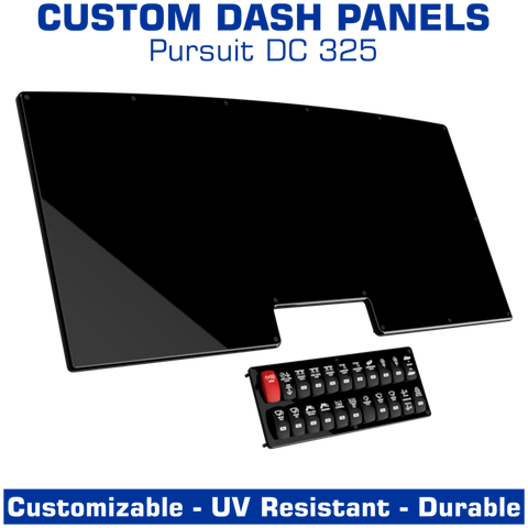 The Pursuit DC 325 console consists of a 2-part dash & switch panel setup.  There is a large dash panel, and a port side switch panel.  This listing is for a blank dash panel, and a blank switch panel, or a pre-designed switch panel.  You can purchase the custom panels independently or you can purchase the entire 2-part dash setup.