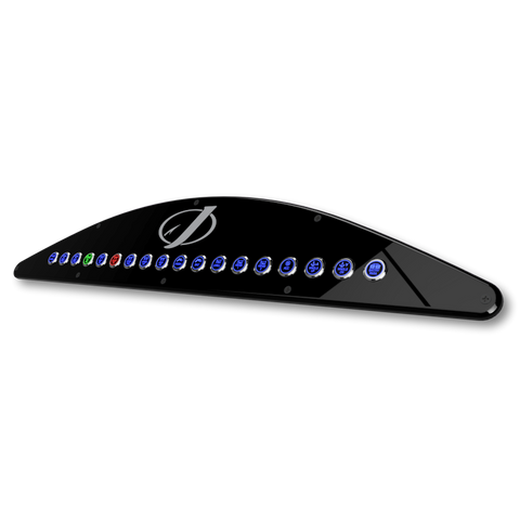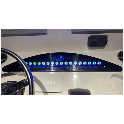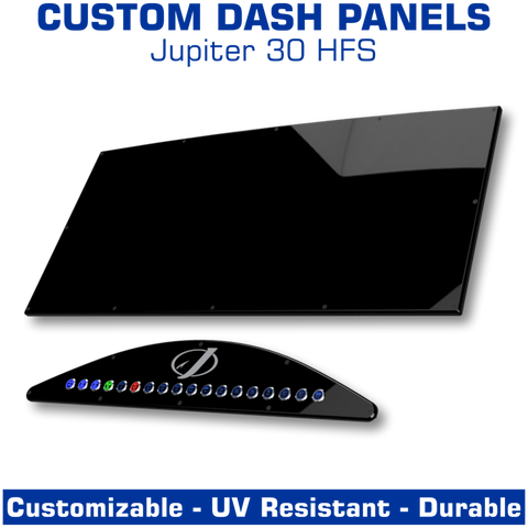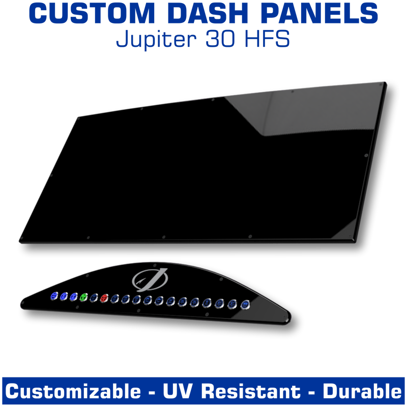 The Jupiter 30 HFS console consists of a 2-part dash and switch panel setup. There is a dash panel, and a switch panel. This listing is for a blank dash panel and/or a blank switch panel, or a pre-designed switch panel. You can purchase the custom panels independently or you can purchase the entire 2-part dash and switch panel setup.