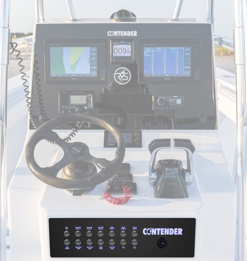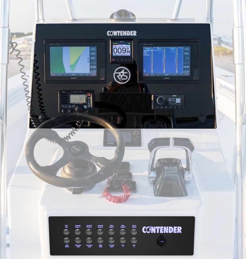 Upgrade options are listed below and can be added during the next step; the design! We recommend you purchase both dash panels for the Contender 32T/ST console and let our design team come up with something custom and incredible for your boat and your needs.